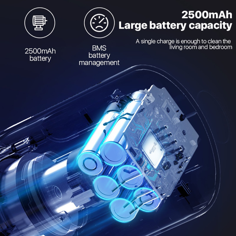 برای استفاده راحت تر یک باتری 2200 میلی آمپر ساعتی داخل جارو برقی شیائومی درما VC811 قرار داده شده که میتواند در هر بار شارژ تا 30 دقیقه کار کند. موتور این دستگاه از نوع برسی بوده دارای 2 حالت استاندارد/زیاد است که در هر حالت جارو برقی VC811 شیائومی میتواند برای 30/18 دقیقه کار کند.