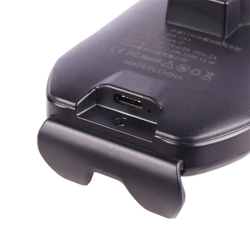 پایه نگهدارنده و شارژر بی سیم ریمکس مدل RM-C61 محصولی از کمپانی ریمکس است. این محصول موفق به کسب استاندارد های سلامت و ایمنی محصولات شامل CE / FCC / RoHS شده است. در این هولدر استحکام بیشتر از طریق ایجاد حالت مکش با استفاده از اهرم کوچک تعبیه شده در قسمت پایه و مناسب برای گوشی های 4٫7 الی 6٫7 اینچ ایجاد شده است. این محصول مجهز به تکنولوژی شارژ وایرلس مناسب برای گوشی های با امکان پشتیبانی از فناوری Qi با میزان توان خروجی متغیر و برابر با 5 / 7٫5 / 10 / 15 وات است. در این محصول تامین انرژی شارژر وایرلس از طریق اتصال پورت Type-C تعبیه شده بر روی بدنه به درگاه USB خودرو، دارای کلید لمسی جهت باز کردن بازوی گیره براکت شده است. امکان نصب روی دریچه کولر خودرو، تعبیه فضای خالی برای درگاه شارژ گوشی جهت شارژ هنگام رانندگی، مقاوم در برابر لغزش و کشسان در هنگام رانندگی را دارد. در این محصول بدنه ساخته شده از جنس پلاستیک ABS و PC مقاوم در برابر ضربه، فشار و ضربه های ناگهانی با قابلیت چرخش 360 درجه جهت تنظیم زاویه مناسب برای صفحه نمایش موبایل است.