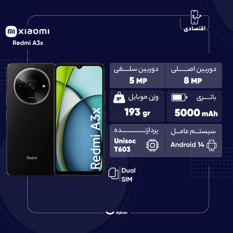 شیائومی Redmi A3x یکی از محصولات جدید این برند محبوب است که در می 2024 معرفی شده است. این گوشی با طراحی مدرن و جذاب به همراه صفحه نمایشی بزرگ، انتخابی مناسب برای کسانی است که به دنبال دستگاهی با کارایی بالا و قیمت مناسب هستند. صفحه نمایش 6.71 اینچی از نوع IPS LCD با نرخ تازهسازی 90 هرتز و روشنایی 500 نیت، تجربهای روان و دلپذیر را در اختیار کاربران قرار میدهد. محافظ گوریلا گلس 3 نیز امنیت این صفحه نمایش را تضمین میکند. این گوشی با دوربین پشتی هشت مگاپیکسلی و دوربین جلوی پنج مگاپیکسلی امکان ثبت لحظات روزمره و سلفیهای باکیفیت را فراهم میکند. پردازندهی هشت هستهای Unisoc T603 با اندروید 14 و رابط کاربری MIUI، عملکردی روان و بدون تاخیر را ارائه میدهد. باتری 5000 میلیآمپر ساعتی و شارژ 10 واتی نیز به کاربران این امکان را میدهد تا مدت زمان بیشتری از دستگاه خود استفاده کنند. با پشتیبانی از دو سیمکارت، حسگر اثر انگشت در کنار بدنه و حافظه داخلی 64 گیگابایتی، این گوشی یک انتخاب مناسب برای نیازهای روزمره است. گفتنیست که این گوشی موبایل از قابلیت display over other apps پشتیبانی نمیکند.