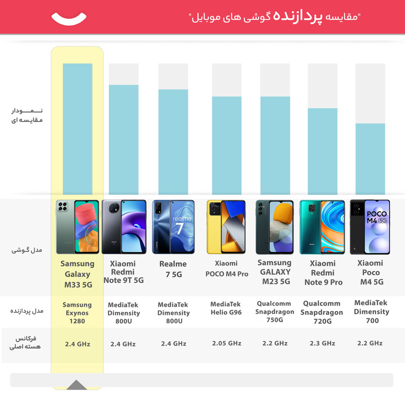گوشیهای میانرده سری A سامسونگ همواره توانستهاند با بهره بردن از مشخصات فنی مناسب در کنار قیمتی مقرون بهصرفه، عملکرد قابل قبولی را از خود بهنمایش بگذارند. گوشی موبایل سامسونگ مدل Galaxy M33 5G SM-M336B/DS دو سیم کارت ظرفیت 128 گیگابایت و رم 8 گیگابایت هم یکی از گوشیهای هوشمند میانرده باکیفیت این سری است. سامسونگ گلكسی در نمای روبهرویی به صفحهنمایش با ابعاد 6.6 اینچ و رزولوشن 1080×2408 پیکسل از نوع TFT LCD مجهز شده است. با توجه به توانایی نمایش 400 پیکسل در هر اینچ و حداکثر نرخ بروزرسانی 120 هرتز، نشان از آن دارد که با صفحهنمایش باکیفیتی روبهرو هستیم. بریدگی قطرهای شکل ناچ در قسمت بالایی و مرکزی صفحهنمایش، سنسور دوربین سلفی با رزولوشن 8 مگاپیکسل را در خود جای داده که برای ثبت تصاویر در نور روز و تماسهای تصویری، عملکرد قابل قبولی دارد. در قسمت پشتی هم یک سنسور دوربین اصلی با رزولوشن 50 مگاپیکسل از نوع عریض (wide) در کنار سنسور 5 مگاپیکسل از نوع فوق عریض (ultrawide) در کنار دو سنسور با رزولوشن 2 مگاپیکسل از نوع سنجش عمق و ماکرو، سنسورهای دوربین چهارگانه سامسونگ Galaxy M33 SM-M336B/DS را تشکیل میدهند. توانایی ضبط ویدیو با حداکثر کیفیت 4K سبب شده تا عملکرد خوبی را از سنسور دوربین این گوشی هوشمند میانرده در بخش فیلمبرداری شاهد باشید. Galaxy M33 5G SM-M336B/DS به پردازنده اختصاصی اگزینوس 1280 شرکت سامسونگ مجهز شده است که توانایی ارائه عملکرد کاملا قابل قبولی را در اجرای بازیهای سنگین (مثل کالآفدیوتی موبایل و آسفالت 9) و نرمافزارهای محبوب و کاربردی دارد. سیستم عامل پایه گوشی گلكسی Android 11 است. همانند اکثر گوشیهای هوشمند میانرده سری A، سامسونگ Galaxy M33 5G SM-M336B/DS هم به باتری قدرتمندی با میزان ظرفیت 6000 میلیآمپرساعت مجهز شده که در شرایط استفاده معمولی به ازای هر بار شارژ صددرصدی، طول عمر مفید (زمان آماده بهکار) دو روز را ارائه میکند. گوشیهای اکتیو هم به این شکل هستند که به دلیل محدودیتهای برخی از محصولات برای کشور ایران، در کشورهای همسایه بهصورت رسمی با یک بار قرار گرفتن سیمکارت، اکتیو شده تا امکان استفاده در کشور وجود داشته باشد و پلمپ میشوند و باید بدانید که این پروسه هیچ مشکلی در راستای گارانتی کالا بههمراه ندارد.