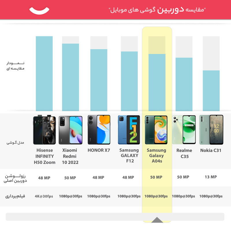 بدون شک گوشیهای هوشمند سری A سامسونگ در بین رقبا توانستهاند عملکرد بسیار خوبی را بهنمایش بگذارند. یکی از این گوشیهای باکیفیت و البته مقرون بهصرفه، سامسونگ Galaxy A04s است. طراحی در نظر گرفته شده برای این گوشی، طراحی آشنایی است که پیش از این هم سامسونگ از آن در گوشیهای هوشمند خود استفاده کرده بود که البته بسیار کاربر پسند است. در نمای روبهرویی این گوشی به صفحهنمایش با ابعاد 6.5 اینچ و رزولوشن 720×1600 پیکسل از نوع PLS مجهز شده است. صفحهنمایشی که از قابلیتهای آن میتوانیم به نرخ بروزرسانی 90 هرتز و حداکثر روشنایی 400 نیت (شمع در متر مربع) اشاره کنیم. بریدگی قطرهای شکل ناچ در قسمت بالایی و مرکزی صفحهنمایش سنسور دوربین سلفی با رزولوشن 5 مگاپیکسل را در خود جای داده که برای ثبت تصاویر در نور روز مناسب است و البته برای تماسهای تصویری هم عملکرد کاملا قابل قبولی دارد. در قسمت پشتی این گوشی سه سنسور دوربین در نظر گرفته شده است. سنسور دوربین اصلی با رزولوشن 50 مگاپیکسل که باید بگوییم برای چنین گوشی مقرون بهصرفهای سنسور قدرتمندی به حساب میآید در کنار دو سنسور 2 مگاپیکسل از نوع سنجش عمق و ماکرو، سنسورهای دوربین سهگانه سامسونگ Galaxy A04s را تشکیل میدهند. پردازنده اگزینوس 850 اختصاصی سامسونگ هم برای اجرای بازیهای محبوب و نرمافزارهای کاربردی، عملکرد قابل قبولی دارد. در نهایت هم باتری با میزان ظرفیت 5000 میلیآمپرساعت سبب شده تا سامسونگ Galaxy A04s به ازای هر بار شارژ صد درصدی، طول عمر مفید (زمان آماده بهکار) دو روز را در شرایط استفاده معمولی ارائه کند.