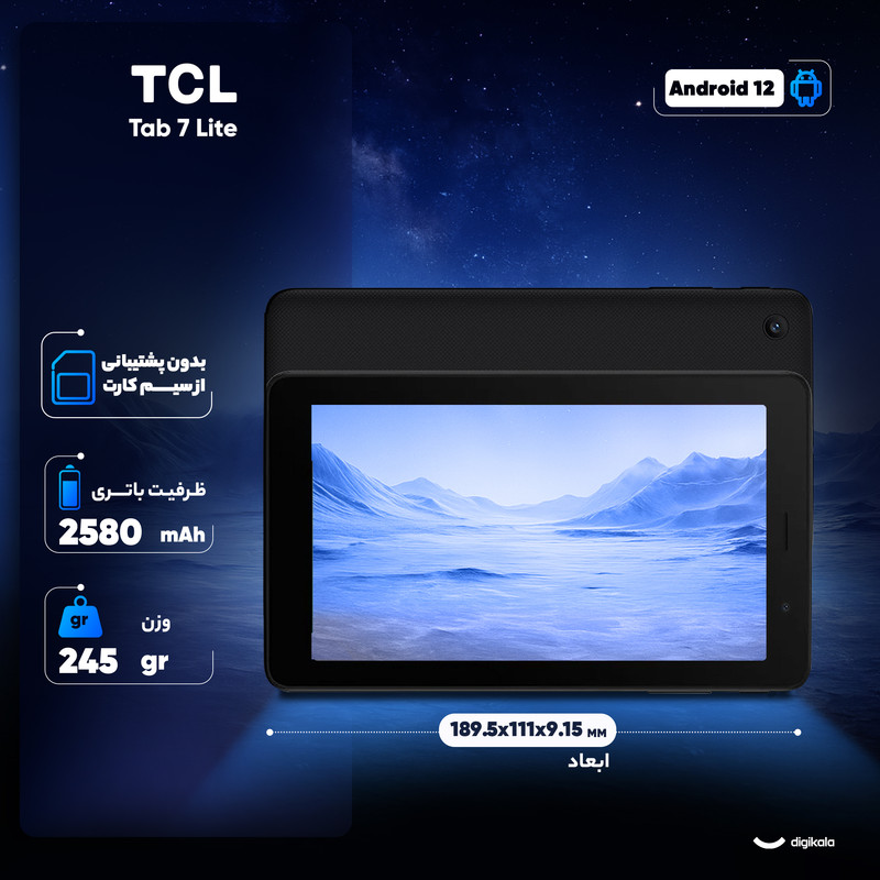 TCL Tab 7 Lite یک تبلت فوقالعاده اقتصادی و سبک ۲۴۵ گرمی است که برای کارهای سبک روزمره مانند وبگردی، مطالعه و استفادهی کودکان طراحی شده. بدنهی پلاستیکی آن، در عین سادگی، کاربردی است و بهراحتی در دست جای میگیرد.